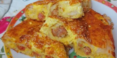 Koru rašititi na sto pa je pouljiti preko nje staviti drugu. I nju malo poprskati uljem. Na dno kore po širini staviti par kašiika nadeva od krompira i kobasica . Uviti u rolnicu. Pleh pouljiti pa prvu rolnicu staviti u sredinu i uviti u krug. Sve ostale rolnice stavljati u krug.