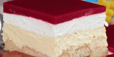 Maline skuvajte sa šećerom, pa ih štapnim mikserom sjedinite. Procedite i dodajte želatin koji ste prethodno pomešali sa vodom i promešajte. Sipajte preko umućene slatke pavlake. Stavite u frižider na sat vremena.