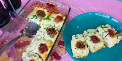 U mleveno meso dodati navedene sastojke i dobro izmešati. Pleh podmažiti uljem, pa praviti ćuftice, premazati malo uljem i peći na 200 stepeni oko 20 minuta. U činiju umutiti jaja, dodati jogurt i pavlaku, narendan kačkavalj, beli luk. Izmućenim jogurtom preliti ćufte i vratiti u rernu na još 15-20 minuta.