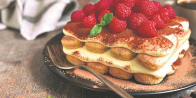 Piškote potopite na kratko u posudu sa čajem ili kafom i poređajte u odgovarajući pleh. U drugoj posudi umutite neutralnu pavlaku sa šećerom u prahu i vanilom. Dodajte maskarpone i promešajte smesu. Dobijeni krem nanesite preko prvog reda piškota, a odozgo rasporedite voće. Nakon toga ponovo stavite red piškota, pa red krema. Tiramisu pospite kakaoom i ukrasite voćem. Stavite u frižider na sat-dva.