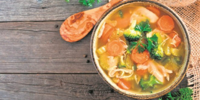 U šerpi na malo ulja propržite iseckan crni luk. Dodajte belo meso iseckano na kockice i pržite dok ne porumeni. Povrće očistite, isecite na krupnije komade, pa dodajte u šerpu zajedno sa pirinčem. Još malo sve zajedno propržite, posolite, dodajte kašiku brašna, promešajte i nalijte vodom. Kuvajte na tihoj vatri oko 45 minuta. U gotovu supu dodajte naseckan peršun. Služite je s parmezanom.