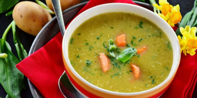 Nalijte sa vodom onoliko koliko želite da dobijete čorbe. Posolite i pobiberite po ukusu. Dodajte suvi biljni začin i kuvajte na laganoj vatri. Kada se krompir skuva dodajte peršun i čorba je gotova. Služite je dok je topla.