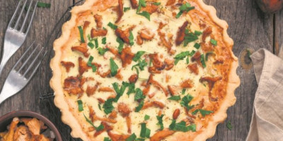 Lisičarke očistiti, iseći na komade, pa propržiti u tiganju na srednjoj temperaturi dok višak tečnosti ne ispari. Dodati maslac i iseckan mladi luk i pržiti još pet minuta. Posoliti, pobiberiti, začiniti po ukusu, te umešati brašno i pavlaku. Kad proključa, skloniti s vatre. Žumanca dodati odmah, a belanca ulupati u čvrst sneg, pa i njih sjediniti sa smesom od pečuraka. Testo razvaljati, prebaciti u pleh, odozgo sipati fil, pa peći u rerni 30-35 minuta.