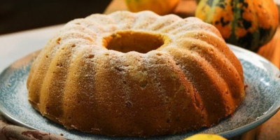 2 parčeta bundeve stavite u rernu na 250 stepeni oko 30 minuta, dok je vruća izvadite kašikom i izgnječite. Umutite jaja sa šećerom i vanilom, dodajte sve ostale sastojke, dobro izmiksajte i sipajte u podmazan kalup za kuglof. Pecite oko 50 minuta na 180 stepeni.