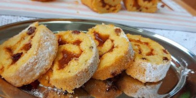 Peći na 200 stepeni C oko 15 min da porumeni. Istresti na krpu i uviti. Kad se malo prohladi odviti premazati džemom i ponovo uviti. Posuti prah šećerom.