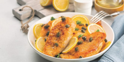 Piletinu iseći na šnicle, posoliti, pobiberiti i uvaljati u brašno. Pržiti u tiganju na zagrejanom ulju po pet minuta sa obe strane da meso porumeni, pa ga ocediti i prebaciti na tanjir. U tiganj ubaciti kapar, mešati 30 sekundi, pa preliti vinom i krčkati još dva minuta. Dodati sok od limuna, vodu i maslac, neprekidno mešati minut-dva, pa vratiti meso i posuti iseckanim peršunom.