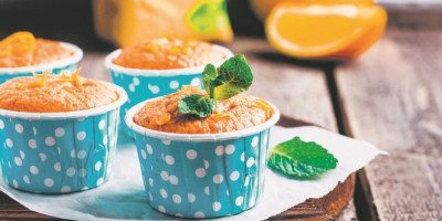 Pomešati brašno, šećer, prašak za pecivo i so. U drugoj činiji mikserom umutiti omekšali maslac, dodati jaja, mleko, vanilu, sok i koru pomorandže, sve dobro izmiksati, pa dobijenu smesu sjediniti sa smesom od brašna. Sipati u kalupe za mafine i peći u rerni na 200 stepeni 15-20 minuta.