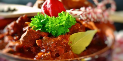 Onda vratite meso, nastavite sa dinstanjem i po potrebi dolivajte pomalo vode. Kad je meso skoro gotovo, dodajte iseckan crni luk.
