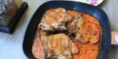 Krmenadle malo izlupati između folije, posoliti i pobiberiti. Teflonski tiganj premazati uljem pa kad se zagreje meso poređati u tiganj. Sipati malo vode i poklopiti. Dinstati krmenadle dok ne omekšaju. U sud staviti sirće, kukuruzni skrob, ajvar, beli luk i 50 ml vode. Sve lepo izmešati bez grudvica. Izdinstane krmenadle preliti sa soja sosom, dodati kašiku ajvara i još malo krčkati da se lepo zapeku. Ubaciti umućen skrob i ostaviti 2-3 minuta da se još malo prokrčkaju.