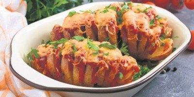 Iseckajte peršun i pospite preko krompira. Krompir pecite u rerni oko 45 minuta na 180 stepeni. Služite uz sezonsku salatu.