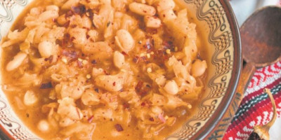 Pasulj naliti vodom i ostaviti da prenoći. Sutradan ga ocediti, staviti u lonac, naliti vodom i kuvati dok ne počne da ključa. Potom ga opet ocediti, naliti novom vodom, te lagano krčkati dok ne omekša. U šerpi na zagrejanom ulju propržiti iseckan crni luk i slaninu, dodati beli luk i mlevenu papriku, te mešati još minut. Zatim ubaciti ribanac, naliti sa malo vode i dinstati dok kupus ne omekša. Dodati oceđen pasulj sa šoljicom vode u kojoj se kuvao, krčkati još pet minuta, posuti tucanom ljutom paprikom i poslužiti.