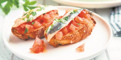 U činiji pomešati sitno isečen crveni luk, na kockice isečen paradajz, izgnječen beli luk, bosiljak, maslinovo ulje, balzamiko, so i biber, sve dobro sjediniti, pa poklopiti i staviti u frižider da odstoji bar dva sata. Kriške hleba kratko zagrejati u tosteru ili rerni, odozgo rasporediti paradajz i filete inćuna, pa odmah poslužiti.