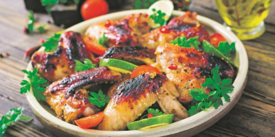 Krilca oprati, odseći im vrhove i prosušiti. Pomešati jogurt, izgnječeni beli luk, sok od limuna, so, biber i ljutu papriku.