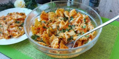 Dodati 2 čena seckanog belog luka , so ili začina. Preliti preko testenine i izmešati.