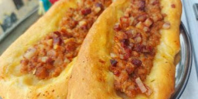 Izmešati. Po pravilu ovo treba napraviti bar sat vremena ranije.. Loptice razvući u manje čamce pa u sredinu poređati meso. Po želji može se dodati i malo kačkavalja.