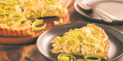 Od brašna, maslaca i soli umesiti glatko testo, umotati ga u prozirnu foliju i staviti u frižider na 30 minuta. Praziluk očistiti i iseći na tanke kolutove. Propržiti ga na maslinovom ulju, posoliti i pobiberiti. U činiji pomešati jaja i sveži sir, pa dodati praziluk. Ohlađeno testo rastanjiti, obložiti njime pleh za pečenje i zapeći u rerni desetak minuta na 250 stepeni. Tek onda sipati na testo smesu od jaja, sira i praziluka i peći još 40 minuta dok ne dobije zlatnožutu koricu. Služiti toplo uz kiselo mleko.