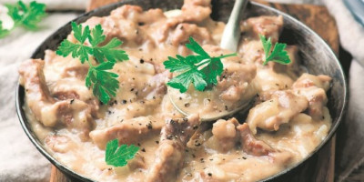 Slavni biftek Stroganov je, kao i mnoga druga raskošna jela predrevolucionarne Rusije, nastao u glavama francuskih kuvara koji su radili za svoje poslodavce, ruske aristokrate. Ovo jelo je tokom 20. veka doživelo mnoge adaptacije diljem sveta, a ovo je jedna od njih... Uživajte!