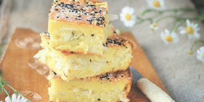 U šerpi prokuvati mleko sa maslacem, pa skloniti sa vatre i malo prohladiti. U činiji pomešati kvasac, šećer i vodu, pa kad smesa nadođe, dodati mleko sa maslacem, jaje, žumanca i so. Sjediniti, postepeno dodavati brašno i zamesiti testo. Ostaviti da nadođe. U međuvremenu u tiganju propržiti iseckan crni luk i rendani kupus. Testo podeliti na dva dela i rastanjiti oklagijom. Prvu koru staviti u pleh, odozgo rasporediti kupus i iseckana kuvana jaja, pa prekriti drugom korom. Po želji premazati još jednim jajetom, posuti susamom i peći u rerni na 180 stepeni 40-45 minuta.