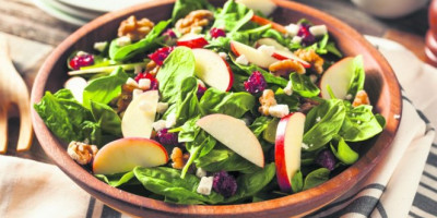 U činiju staviti opran i oceđen spanać, pa dodati na tanke kriške isečenu jabuku, izmrvljen feta-sir, iseckane orahe i suve brusnice. Preliti medom, sokom od limuna i maslinovim uljem, promešati i odmah poslužiti.