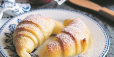 Jagode oprati, očistiti i iseckati, staviti u manju šerpu, dodati šećer i sok od limuna, te kuvati na jakoj vatri uz neprekidno mešanje dok džem ne počne da se zgušnjava. Skloniti sa vatre i prohladiti. Lisnato testo razvaljati oklagijom i iseći na trouglove. Filovati ohlađenim džemom, urolati i formirati kiflice, pa ređati na podmazan pleh. Peći u rerni na 220 stepeni dok kiflice ne dobiju lepu boju. Posuti šećerom u prahu i poslužiti.