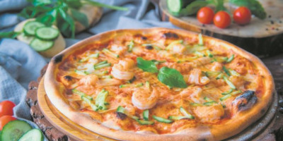 Potom ga rastanjiti oklagijom i prebaciti na podmazan pleh. Odozgo rasporediti usitnjen pelat, rendanu gaudu, iscepkanu mocarelu, parmezan, pečurke isečene na listiće, origano i bosiljak.