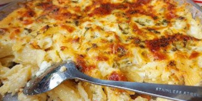 Tepsiju 22 cm. premazati maslinovom uljem i sipati testeninu. a odozgo soss i prodrmati odozgo dodati još malo rendanog kačkavalja. Peći na 220 stepeni C oko 30 minuta da zarumeni.