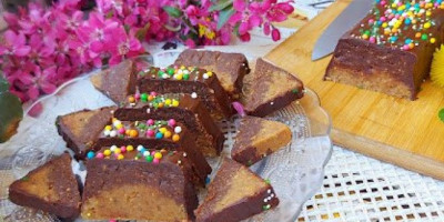 Podeliti na pola. U jednu polovinu dodati rastopljenu čokoladu, a u drugu ostatak keksa i malo ruma. Uzan kalup obložiti folijom providnom, pa na dno staviti svetli deo, a preko čokoladni. Izravnati i ostaviti da se malo prohladi i stegne. Istresti na tacnu ili dasku i preliti čokoladom. Staviti u frižider 2-3 sata i seći.