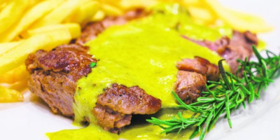 Gotove šnicle sklonite na tanjir. Na istom ulju kratko pržite izgnječeni beli luk, senf i pavlaku. Kuvajte nekoliko minuta i vratite ispržene šnicle.