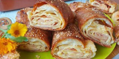 Uviti u rolnicu. Tako uraditi i sa drugom rolnicom. Ređati u podmazan pleh pa premazati ostatkom nadeeva.