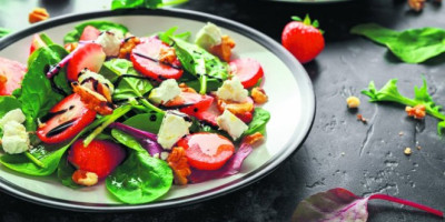 Jagode isecite na listiće, pa poređajte preko spanaća.