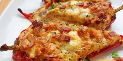 Na papriku rasporediti nadaev a odozgo rasporediti sitno seckanu suvu slaninu.