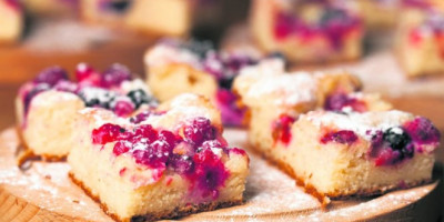 Kolač pecite oko pola sata na 200 stepeni. Kad se malo prohladi, kolač isecite na kocke i pospite šećerom u prahu, pa poslužite.