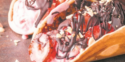 Slatki takosi sa sladoledom, jagodama i čokoladom