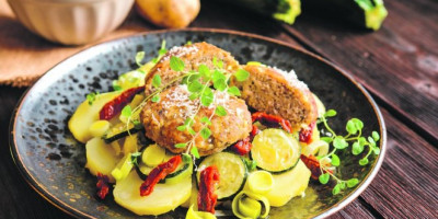 Oblikujte pljeskavice i pecite ih na zagrejanom ulju oko pet minuta s obe strane. Služite ih uz bareni krompir i sezonsku salatu.