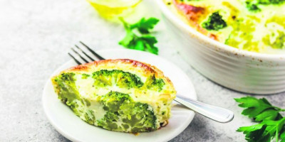 Blanširajte brokoli odvojen na cvetove. Posle toga ih poređajte u vatrostalnu činiju, pa preko pospite sir i sitno iseckan mladi luk.
