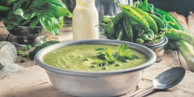 U šerpi na zagrejanom ulju i maslacu, pet minuta propržiti iseckan mladi luk i krompir. Preliti supom i kuvati još deset minuta. Zatim umešati grašak, krčkati dok ne omekša, dodati nanu, so i biber, pa izmiksati u blenderu. Vratiti na vatru, kuvati još minut-dva, te poslužiti dok je toplo.