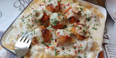 Dodati mleko i malo vode. Kad prokuva, skloniti sa šporeta. Sipati testeninu, pa preliti sa bešamel sosom.