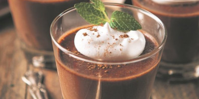 Čokoladu otopiti na pari i malo prohladiti. Belanca ulupati u čvrst sneg. Slatku pavlaku izmiksati u šlag, pa dodati prethodno umućena žumanca i miksati još minut. Potom postepeno dodavati čokoladu i neprekidno mutiti. Na kraju umešati sneg od belanaca i izmrvljene bombone, sve dobro sjediniti, te izliti u čaše ili manje posude. Ukrasiti sa još malo šlaga, ohladiti u frižideru i poslužiti.