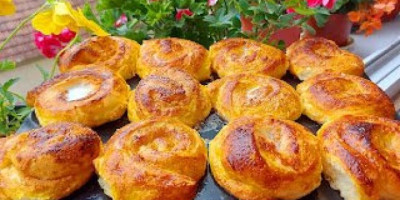 Uviti u rolat i seći nožem rolate debljine 2 cm. Mafini kalupe ili tepsiju premazati uljem pa ređati rolate. Ostaviti da malo odmore pokrivene , premazati žumancetom, pa peći u rerni na 200 stepeni C oko 30 minuta.