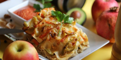 Dodajte dinstano povrće, pa mocarelu i mlad sir koje ste prethodno začinili solju i biberom. Postupak ponavljajte dok ne potrošite sve sastojke.