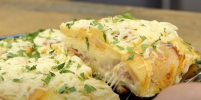 Na prvi krompir koji ste stavili dodajte sir i slaninu, pa pospite rendani sir. Pokrijte tiganj poklopcem i dodajte malo peršuna.