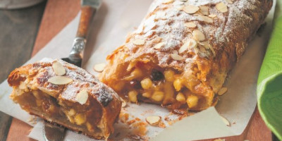 Rastanjite lisnato testo, pa po sredini celom dužinom rasporedite smesu s jabukama. Preklopite ivice, tako da formirate oblik valjka.
