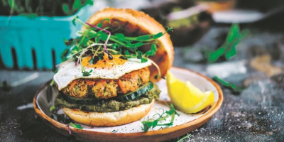 Lososa iseći na komade, staviti u blender, dodati majonez, senf, sok od limuna, so i biber, pa kratko izmiksati. Prebaciti na tanjir, dodati sitno iseckan crni luk i prezle, sjediniti, pa od dobijene smese napraviti burgere. Peći u tiganju na malo ulja dok ne dobiju lepu boju sa obe strane. Izvaditi i staviti na tanjir, a u tiganju ispržiti jaja na oko. Avokado izmiksati u blenderu, dobijenom smesom premazati zemičke, odozgo staviti krastavac, fišburgere i rukolu, pa odmah poslužiti.