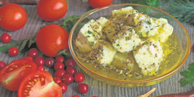 Fetu iseći na kocke i staviti u teglu. Pomešati pola šolje maslinovog ulja, origano, rendanu koru limuna, iseckanu halapenjo papričicu, peršun i malo bibera u zrnu. Preliti sir, dobro zatvoriti i ostaviti da se marinira u frižideru 24 sata.