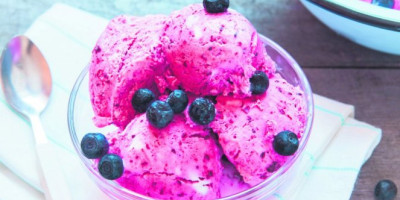 Na kraju dodajte ekstrakt od vanile. Smesu spojte sa izblendiranim borovnicama. Dobro promešajte, pa sipajte u posudu i stavite u zamrzivač. Služite uz sveže voće.