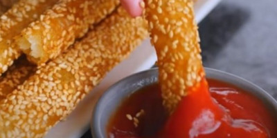 Oljuštite 450g krompira, isecite na četvrtine, prelijte vodom i kuvajte oko 9 minuta ili dok se skroz ne skuvaju. Procedite, prebacite u drugu činiju i izgnječite ga u pire. Dodajte so, biber i 4 kašičice kukuruznog brašna. Sjedinite u testo, odvajajte manje komade, pa urolajte u štapiće, a onda u susam. Pržite u vrelom ulju, sa svih strana, dok ne porumene.