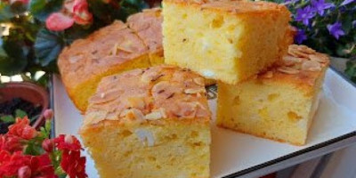 Pleh obložiti pek papirom i sipati i izravnati. Peći na 200 stepeni C oko 50 minuta.