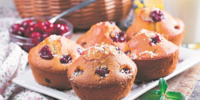 Jaja umutiti sa šećerom, dodati jogurt, ulje, brašno sa kakaom, sodom bikarbonom i praškom za pecivo, pa sve dobro sjediniti. Dodati očišćene višnje, ovlaš promešati, sipati u podmazane kalupe, te peći u rerni na 180 stepeni oko 15 minuta.