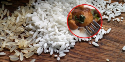 Pirinač stavite u blender i izmiksajte zajedno sa vodom, dok ne dobijete kompaktnu smesu. Prebacite u tiganj, pobiberite i posolite, pa ga u tiganju malo zagrejte i promešajte.