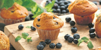U adekvatnoj činiji pomešati brašno, prašak za pecivo i šećer u prahu. U sredini napraviti malo udubljenje, pa sipati ulje, mleko, umućeno jaje i ekstrakt vanile. Sjediniti sve sastojke i mutiti dok smesa ne postane glatka. Na kraju dodati borovnice i pažljivo promešati. U kalupe za mafine staviti papirne korpice, izliti smesu, odozgo posuti sa malo kristal-šećera, pa peći u rerni na 180 stepeni oko 35 minuta.